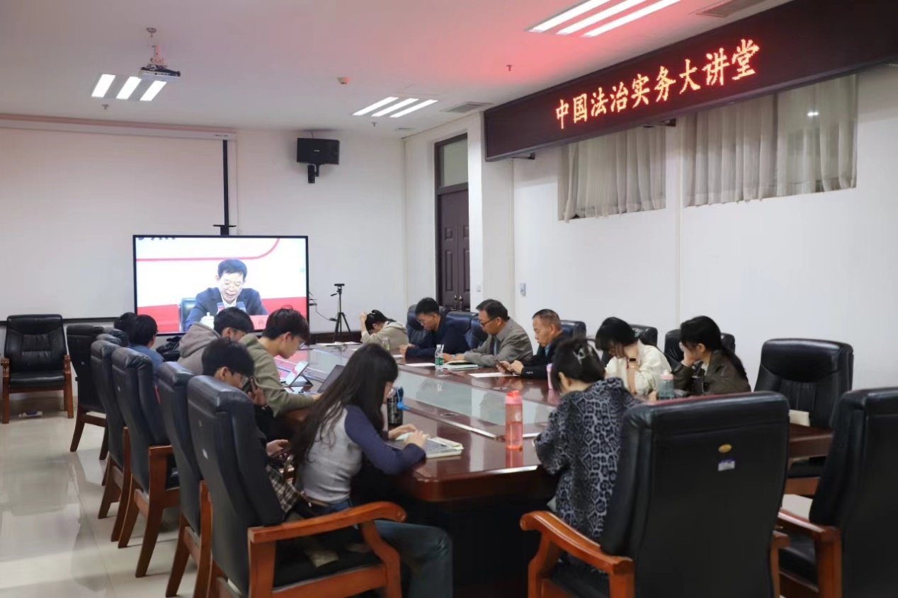 91porn 副院长杨红朝带领法律系专业师生40余人线下聆听法治实务部门领导同志的专题授课。
