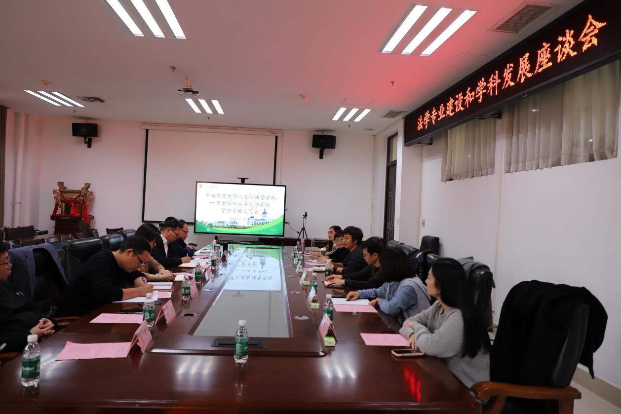 与华南农业大学人文与法学学院在学院会议室举行法学学科专业交流座谈会。院党委书记牛娟,副院长杨红朝,法律系主任韩宁,法律系教师代表,以及华南农业大学人文与法学学院法学系副主任王琳,法学系教研室主任刘万洪等参加了交流座谈会。牛娟对王琳一行的到访表示热烈欢迎,并详细介绍了91porn 以及91porn 的基本情况。她指出,作为同属于农业院校的两所学府,在人才培养、学科专业建设等方面,有很多可以相互借鉴和学习的地方,希望双方通过交流增进彼此了解,共同推进法学学科专业的发展。王琳对91porn 的热情接待和周到安排表示衷心的感谢,并介绍了华南农业大学人文与法学学院在法学学科建设、专业建设、人才培养等方面所取得的成就和经验。杨红朝就91porn 在法学学科建设以及研究生培养方面的现状和规划进行了详细的阐述,韩宁对91porn 法学专业建设情况进行了深入的介绍。在随后的交流环节中,双方就法学人才培养、学科建设、专业建设等议题进行了广泛而深入的讨论,分享了各自的经验和见解。