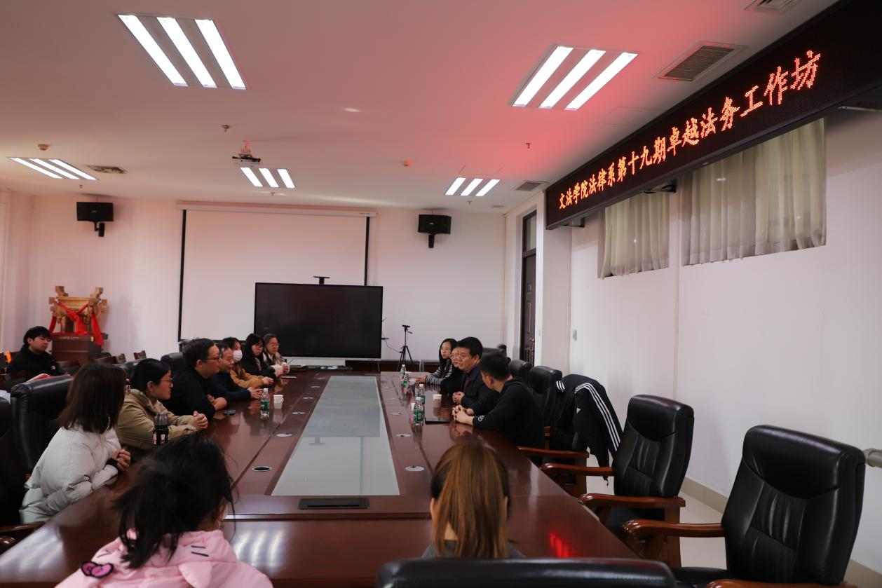 邀请河南英泰律师事务所主任赵钰涛做客第十九期卓越法务工作坊,法学专业学生参与该项活动,活动由法律系主任韩宁主持。