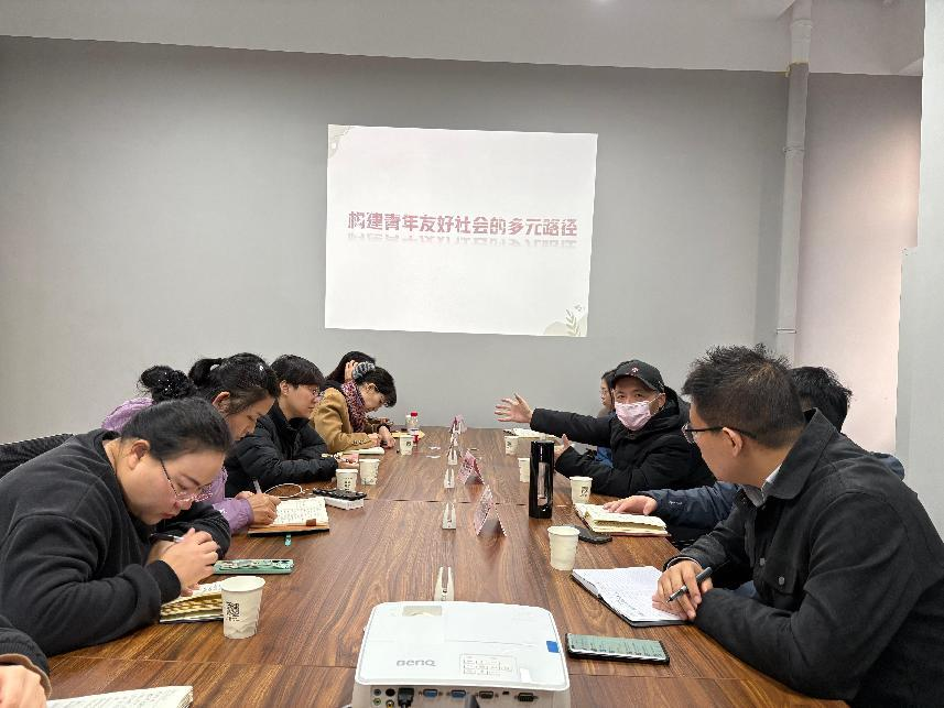 在座谈会中,调研团队围绕青年政策支持、文化参与和心理支持、公共空间建构等关键领域展开深入探讨。市委社会工作部二处王自兴处长、刘风、赵路淋老师对青年友好型社区建设提出了具有前瞻性的意见。