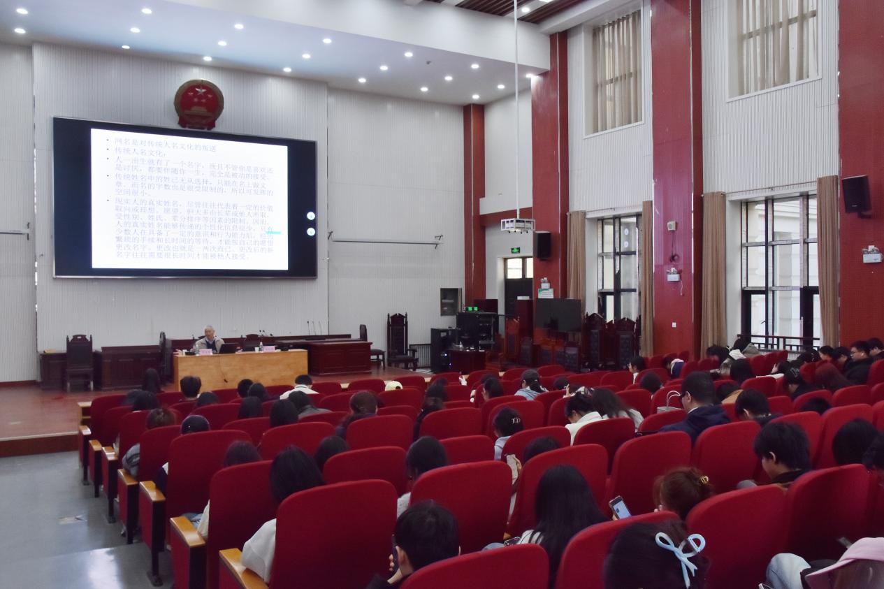 于龙子湖校区模拟法庭举办了一场主题为“我和我的农大——网名文化”的大学生成长成才报告会。本次报告会特邀图书馆原馆长吴海峰教授主讲,院党委副书记朱瑞萍主持,众多师生齐聚一堂,共同聆听这场知识盛宴。