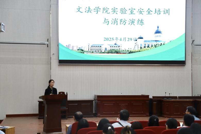 在龙子湖校区繁塔楼A座模拟法庭举办实验室安全培训及消防演练活动,各学科、团队、实验室负责人,师生代表参加会议,会议由院党委副书记朱瑞萍主持。