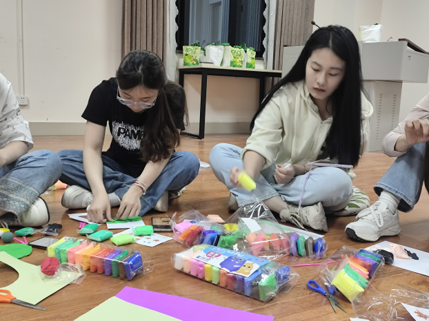 手工创作环节,工作人员向参与者分发黏土和彩色卡纸。经过简短交流,成员们自主选择创作形式:部分独立完成黏土造型,另一些则与组员合作创作。创作期间,成员相互交流技巧,分享材料使用心得。所有成果在现场集中展示,直观体现活动对个体创造力与团队协作能力的培养成效。