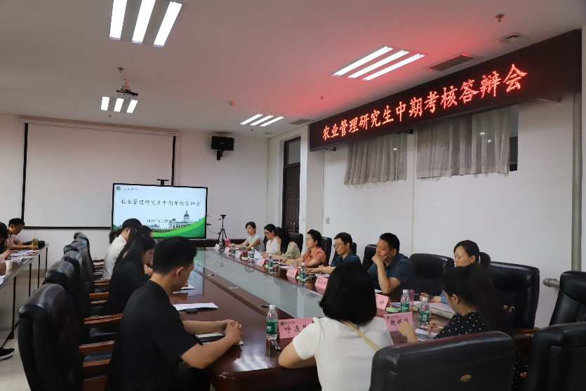 会议室顺利举行。农业管理专业系主任管煜武担任评审组组长,农业管理专业全体教师、2023级全体研究生共同参会。
