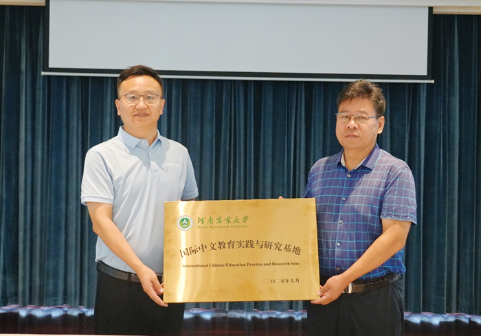 会谈结束后,双方代表共同签署国际中文教育硕士实习基地建设协议,并为“国际中文教育专业实习实践基地”揭牌。