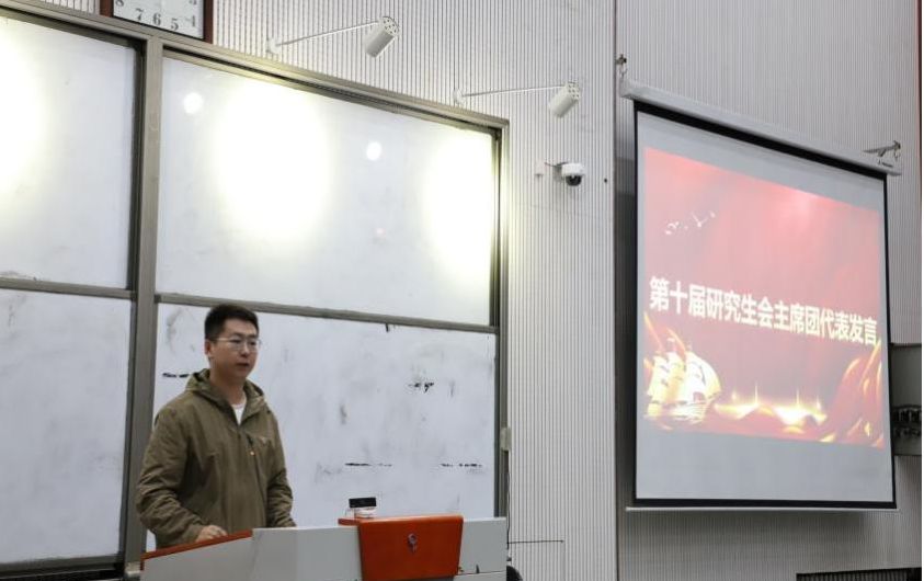 大会在庄严的国歌声中拉开帷幕,全体参会人员起立、肃立,奏唱国歌,现场气氛庄重热烈。会上,第十届研究生会主席团代表丁一玺向大会做述职报告,系统回顾过往工作实绩,深入剖析不足,并对新一届主席团的工作提出了针对性建议与展望。