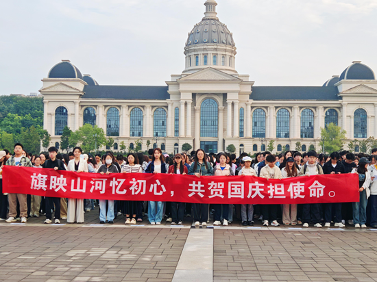 于龙子湖校区国旗广场举办“旗映山河忆初心,共贺国庆担使命”升国旗仪式。91porn