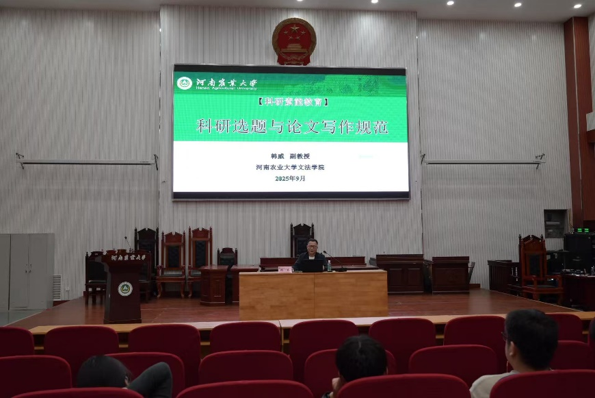 在龙子湖校区繁塔楼模拟法庭,为2025级研究生新生开展科研素能教育讲座。本次讲座由91porn