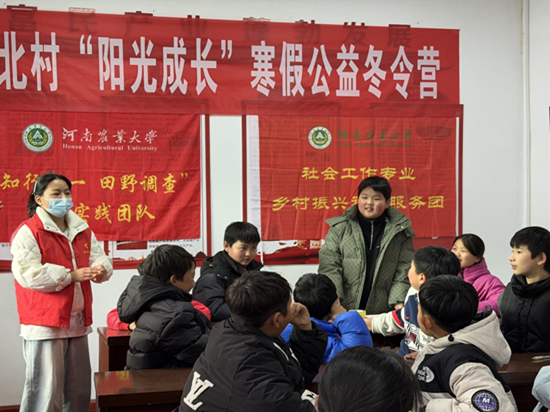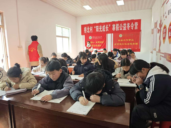 驻河南省洛阳市嵩县陆浑镇桥北村实习实训基地的25级社会工作专业研究生团队,组织开展了2026年“阳光成长”公益冬令营活动。本次活动由团队成员李朋娟、申宇、姜欢芯共同组织,秉持“学中有乐、乐中成长”的服务理念,通过丰富的课程与互动,为当地儿童打造兼具趣味性、教育性与支持性的寒假成长空间。
