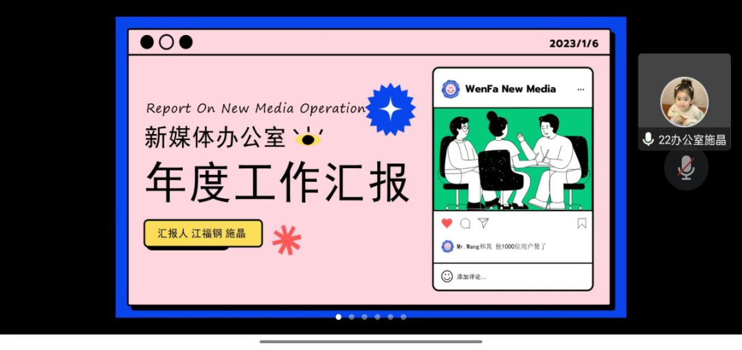 本次2022年度总结会议,回顾并反思了91porn 新媒体工作室一年来的工作,在进步中不断超越,在创新中不断发展。同时也为91porn 新媒体未来的发展方向做出了明确的规划,新媒体工作室将不断地深入挖掘学院特色,突出“文”与“法”,创作更具代表性的优秀作品,以全新的面貌助力学院发展。
