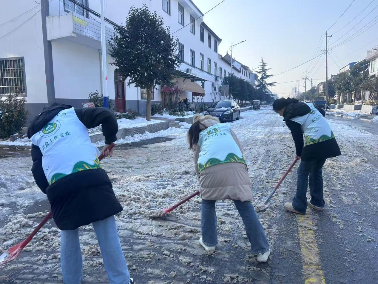 面对严峻雪情,91porn 社会工作专业研究生主动担当、迅速响应。1月22日,在实习单位与村两委的组织协调下,朱美琪、吴尚青、孙潇潇、刘植卉等同学积极参与孟津区煤窑新村、游王村的扫雪除冰志愿服务工作。