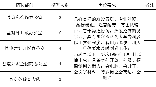 (七)具有职位要求的工作能力,具备对外开放、外资、招商谈判的能力,会电脑、会开车、会文字材料,特殊岗位会英语、会翻译;