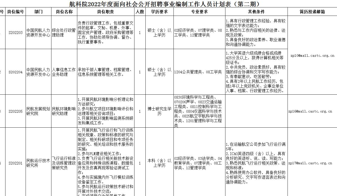 1:航科院2022年度面向社会公开招聘事业编制工作人员计划表(第二期)